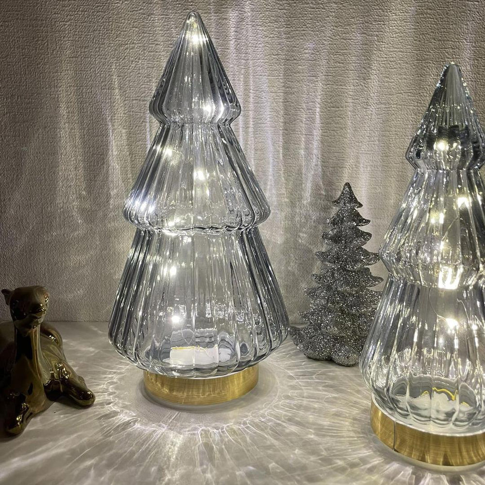 LED-lykt formet som juletre - glass i gråtoner - 10x23,5 cm