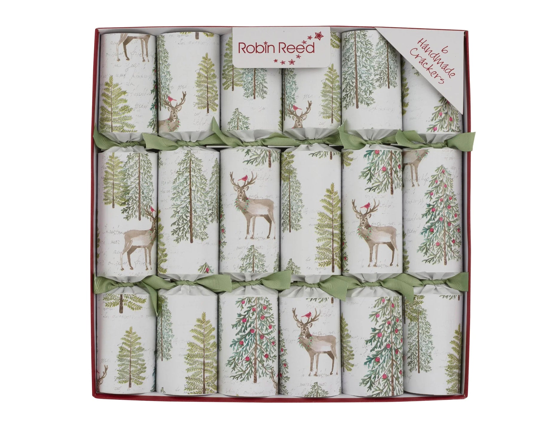 Dekorer bordet ditt med eleganse og stemning med disse smakfulle Sage Woodland smellbonbons fra Robin Reed. Hver bonbon er fylt med en papirhatt, julevits og en eksklusiv gave – perfekt som samtalestarter og hyggelig overraskelse for gjestene. Det dempede grønne designet og naturlige detaljene gjør dem ideelle for nordiske julebord og vertinnegaver med stil.