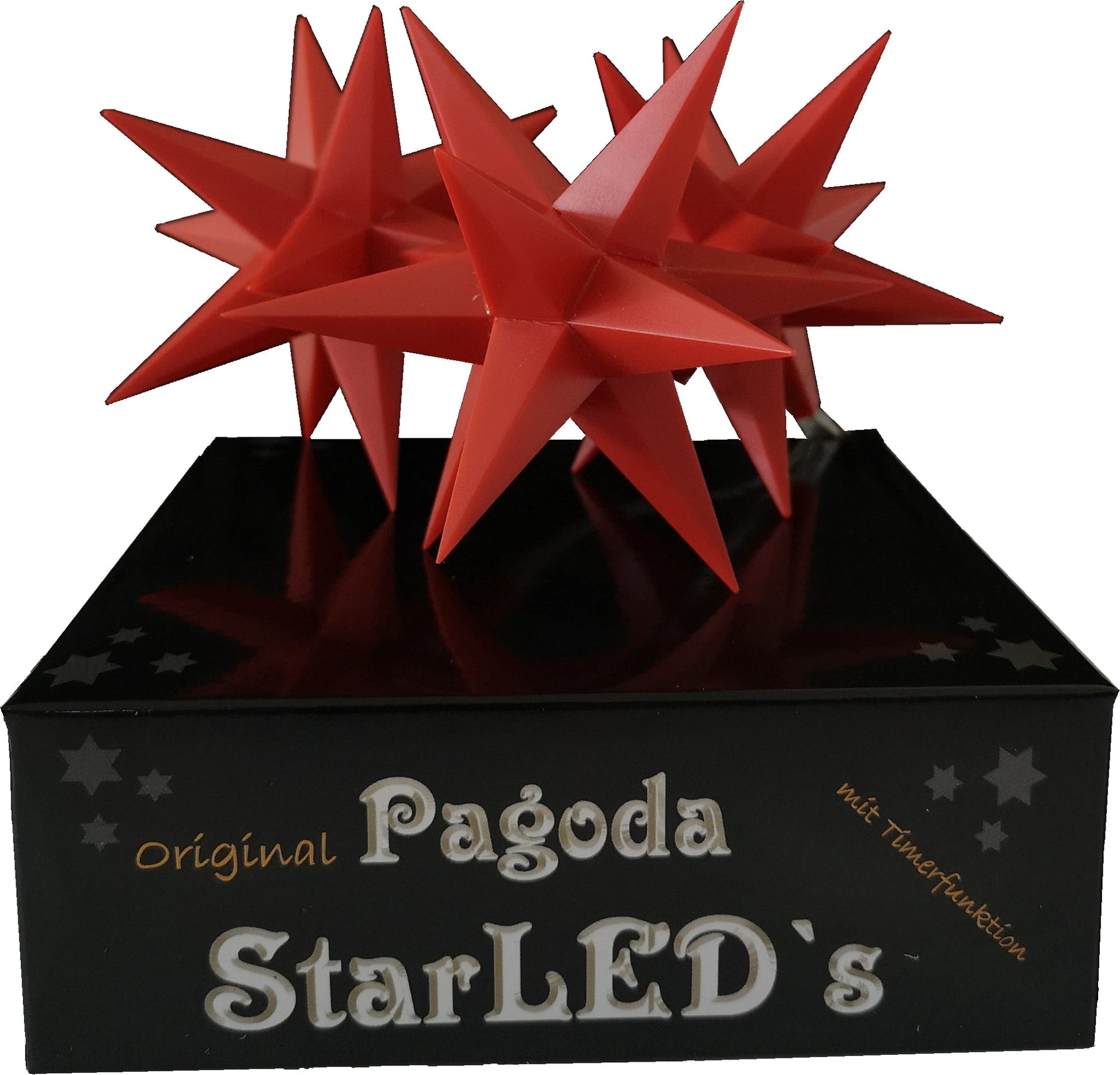 Tre små røde stjerner med 12 tagger gir deg klassisk julestemning i moderne LED-format. Disse dekorative stjernene på 9cm i diameter passer perfekt i vinduskarmer, på bord eller som supplement til annen julebelysning. Settet kommer med adapter og innebygd timer som lar deg nyte lyset uten å tenke på av og på.