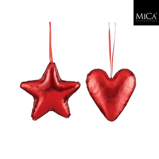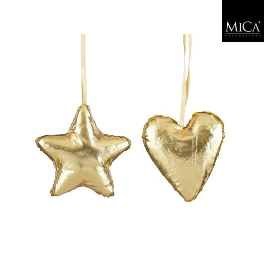Sett med hjerte og stjerne - juletrepynt - gull eller rød