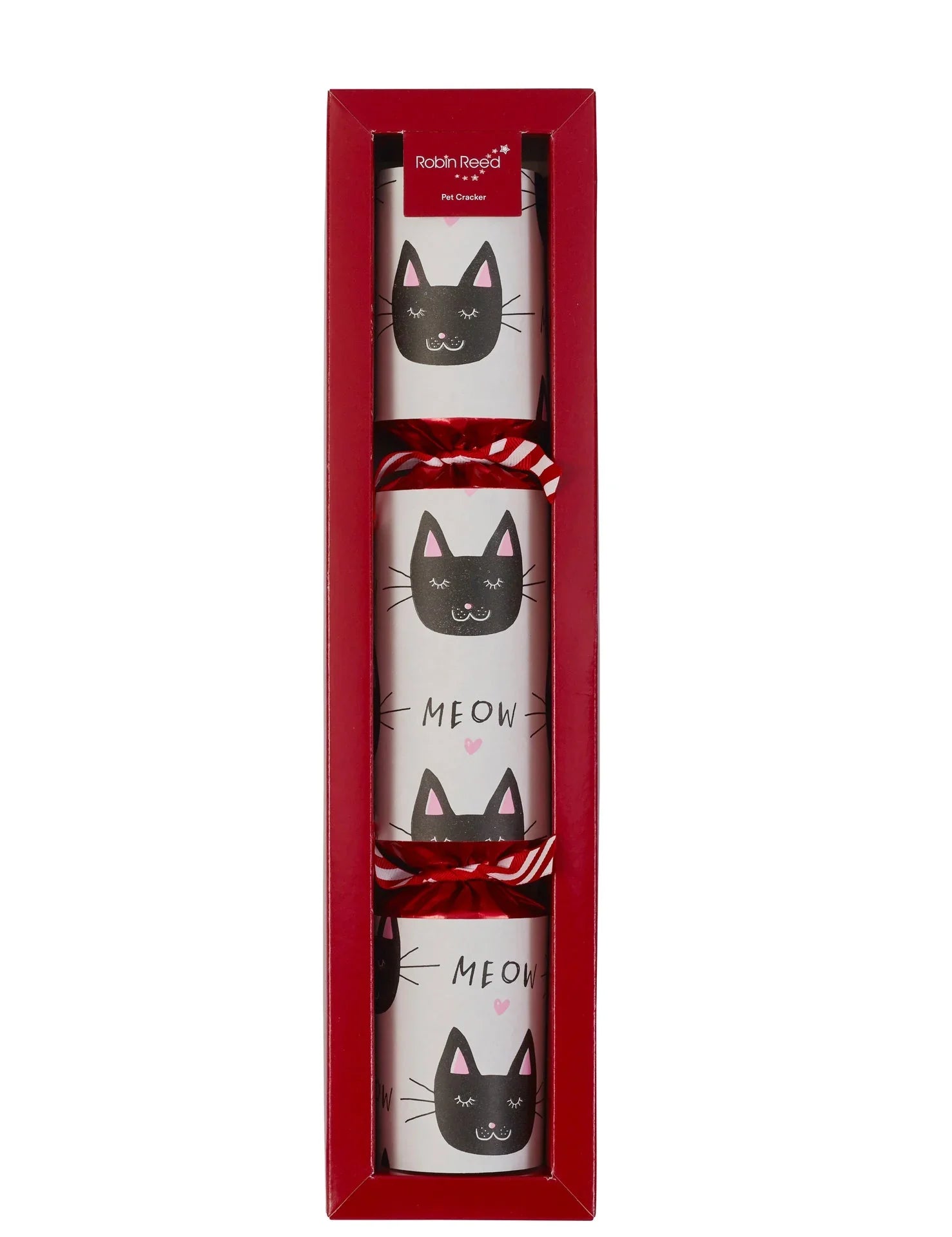 Ikke glem katten i høytiden. Med denne morsomme smellbongbongen fra Robin Reed er du sikret at også katten din får en fin feiring. Dekk bordet og matskålen fint til jul og nyttår med smellbonbon crackers.